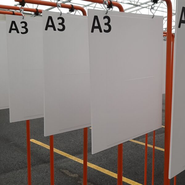 Designed for labelling mobile or variable storage areas in production or warehouses. The foot is sturdy as it is made of metal. Height 1900mm and panel 445 x 375 mm