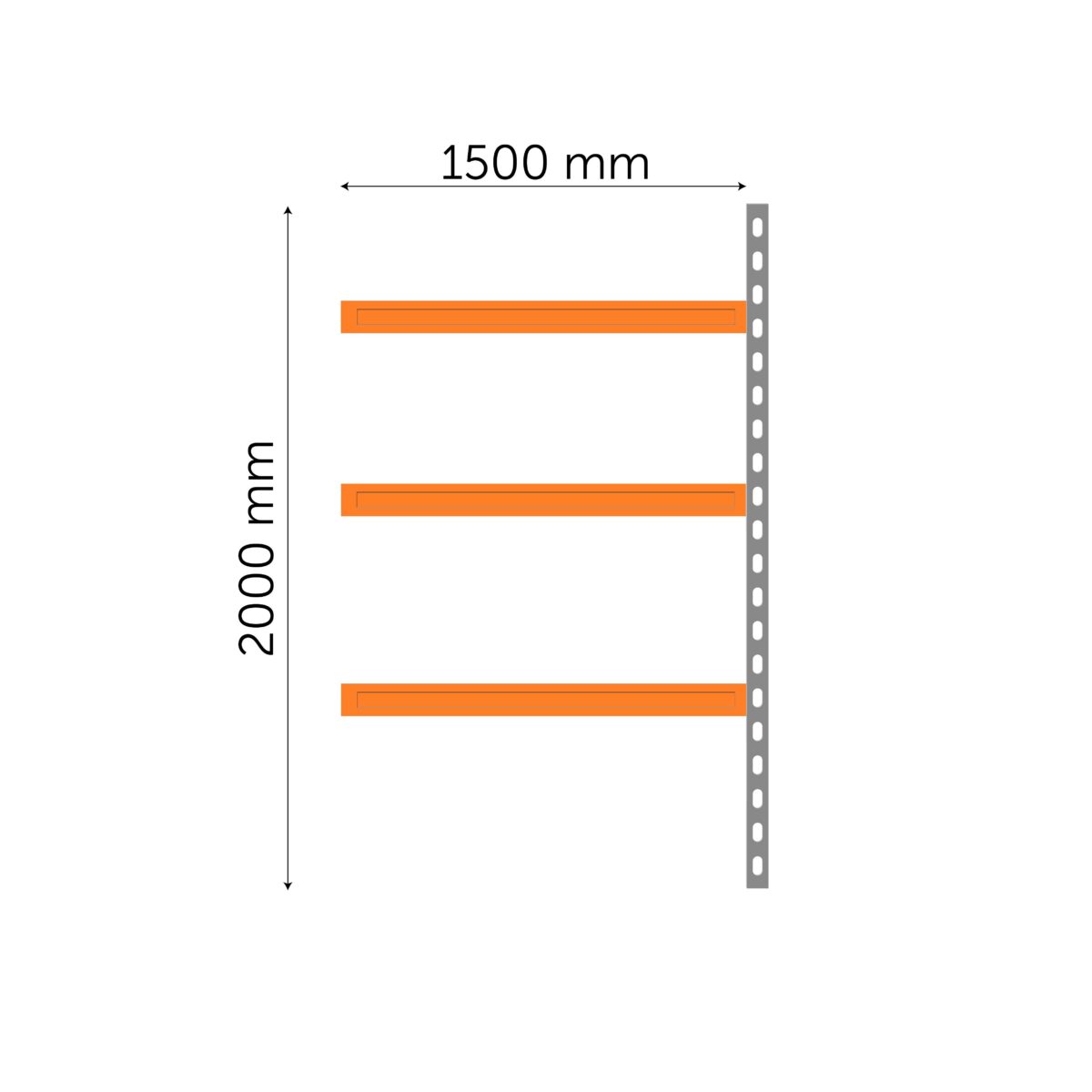 Height of shelf: 60 mm Width of shelf unit: 1500+ 55 mm (post)=1555 mm