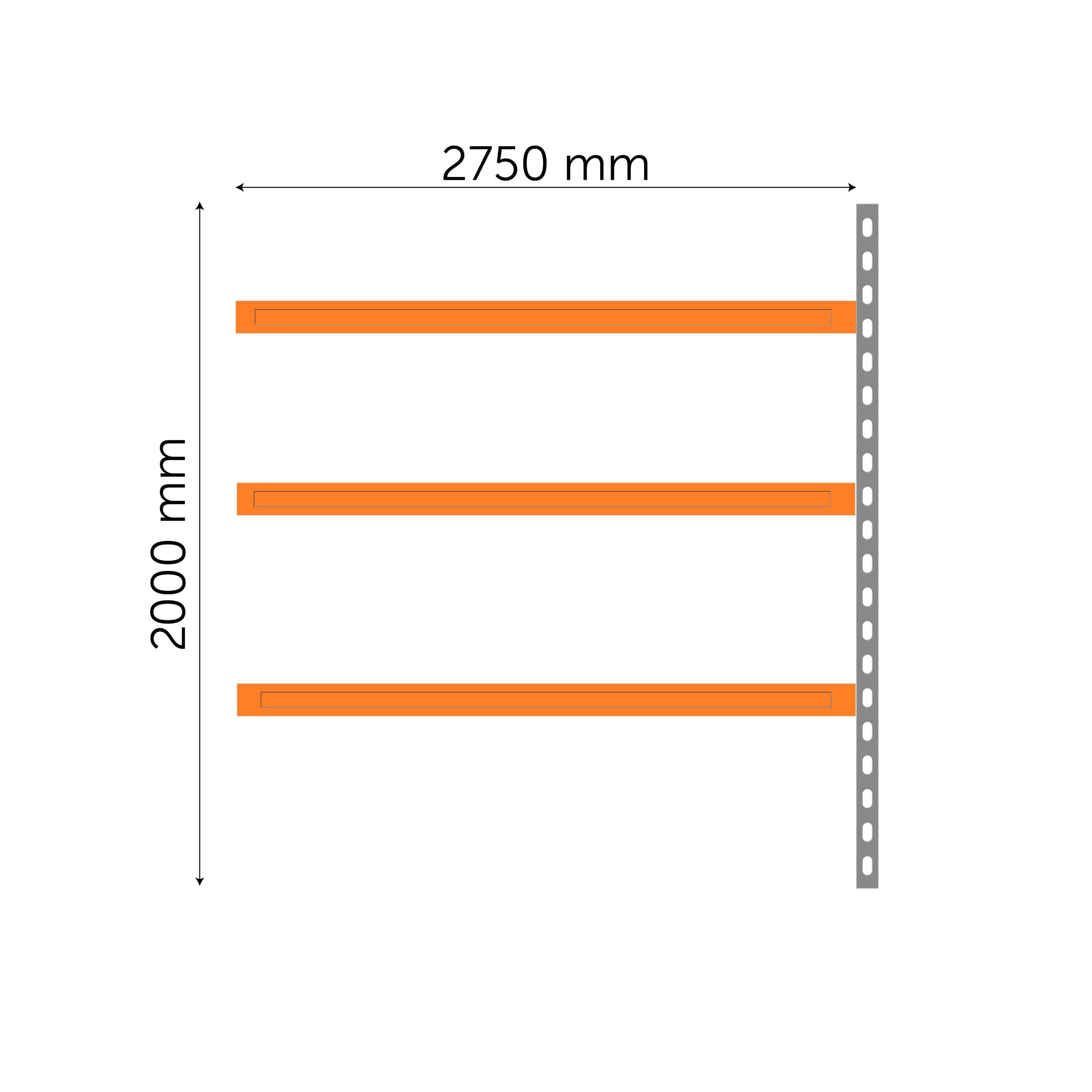 Высота полки: 60 мм Ширина полки: 2750+ 55 мм (стойка)=2805 мм