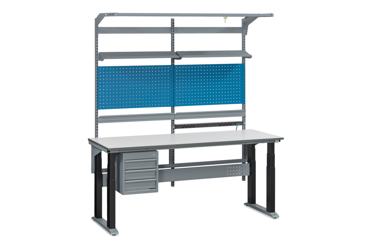 Stable and powerful workbench with four pillars, intended for work that requires a really stable table. The workbench has a